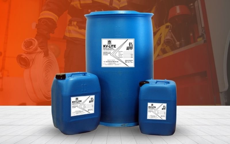 KV-LITE AR-AFFF is an environmental friendly C6 based foam concentrate containing Fluorinated Surfactants, Hydrocarbon Surfactants, Stabilizers and Polysaccharides, which forms a pseudo plastic film on the surface of the polar solvents. KV-LITE AR-AFFF forms a cohesive thin polymeric film at the interface between foam and the water soluble Polar solvents. This thin polysaccharide film protects the foam without destruction of aqueous film by polar solvents. The polymeric film has self-sealing characteristics whereby the film, if disturbed gets regenerated by itself. KV-LITE AR-AFFF forms an aqueous film like AFFF on the surface of hydrocarbon solvents.